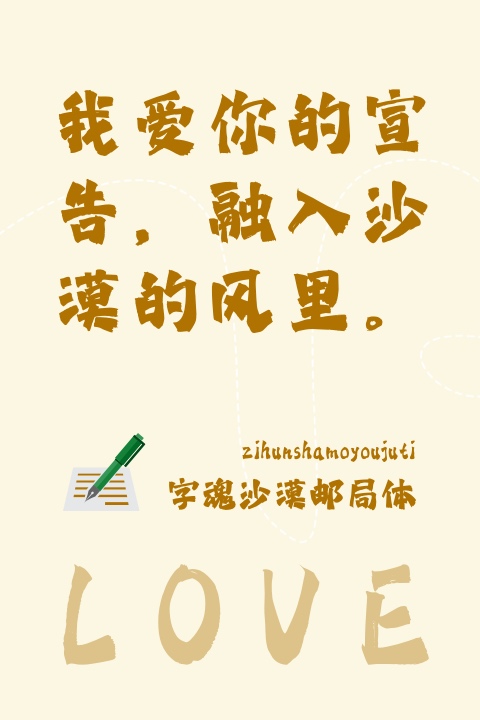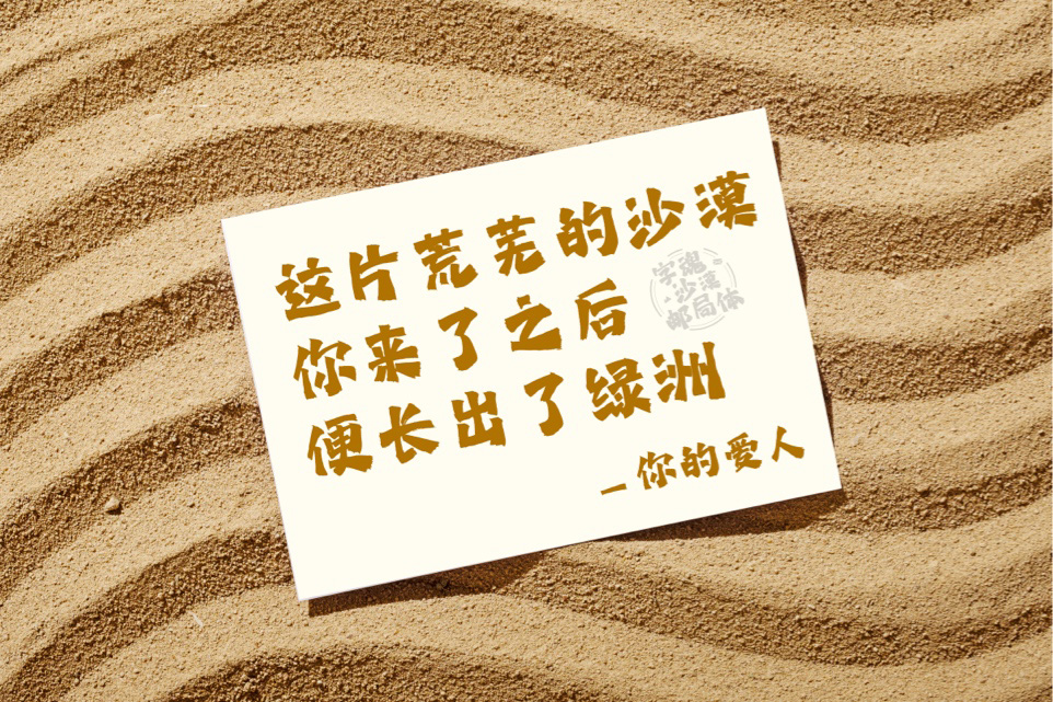 2023年5月20日,沙漠邮局携手字魂创意字库,使用字魂x中国邮政沙漠邮局联名字体「字魂沙漠邮局体」,为你书写沙漠情诗。