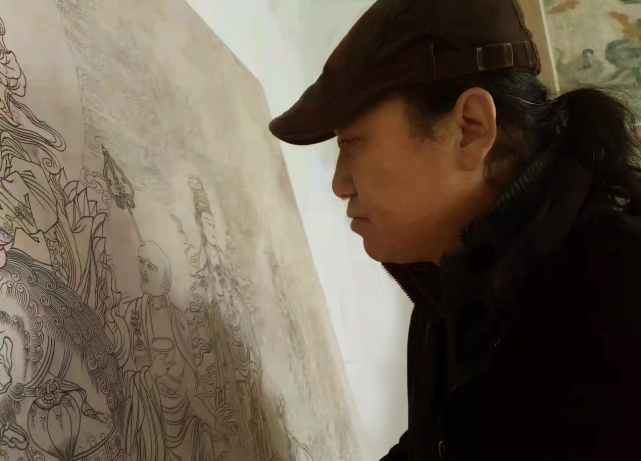沈永平,敦煌画院副院长、敦煌市美协副主席,常年从事泥本临摹敦煌壁画